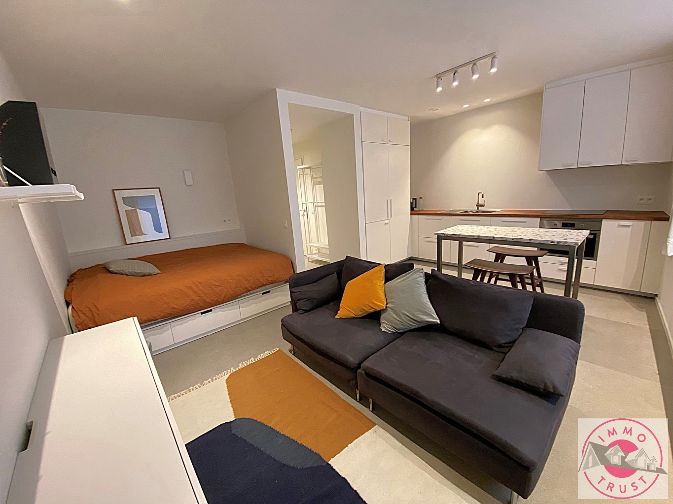 Situé à proximité de l'OTAN, des transporst et commerces, superbe studio meublé de 36m² récemment rénové comprenant :