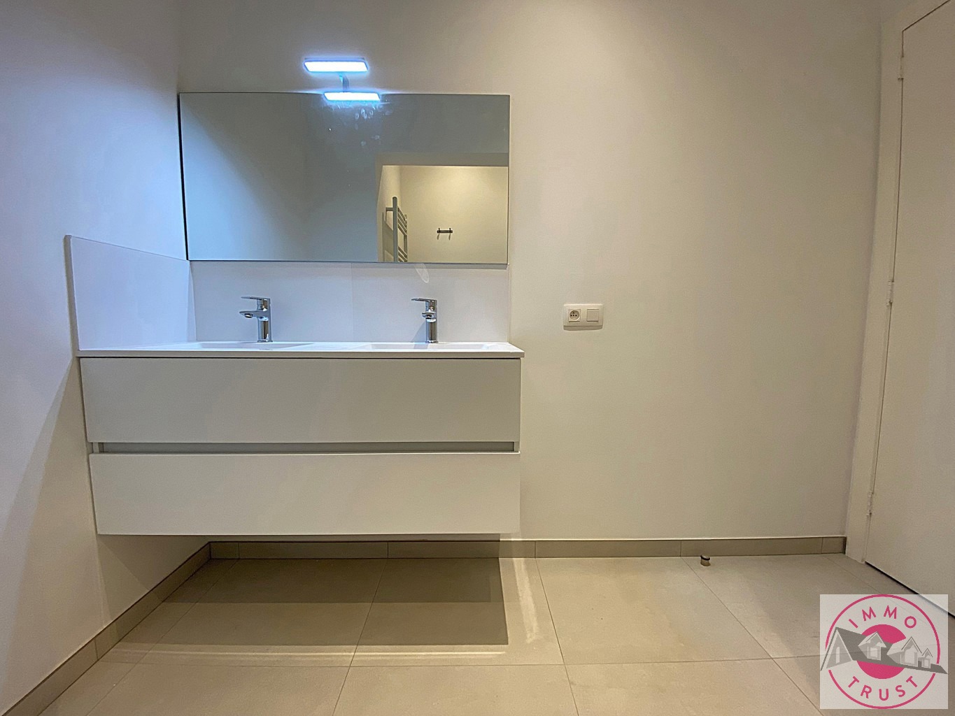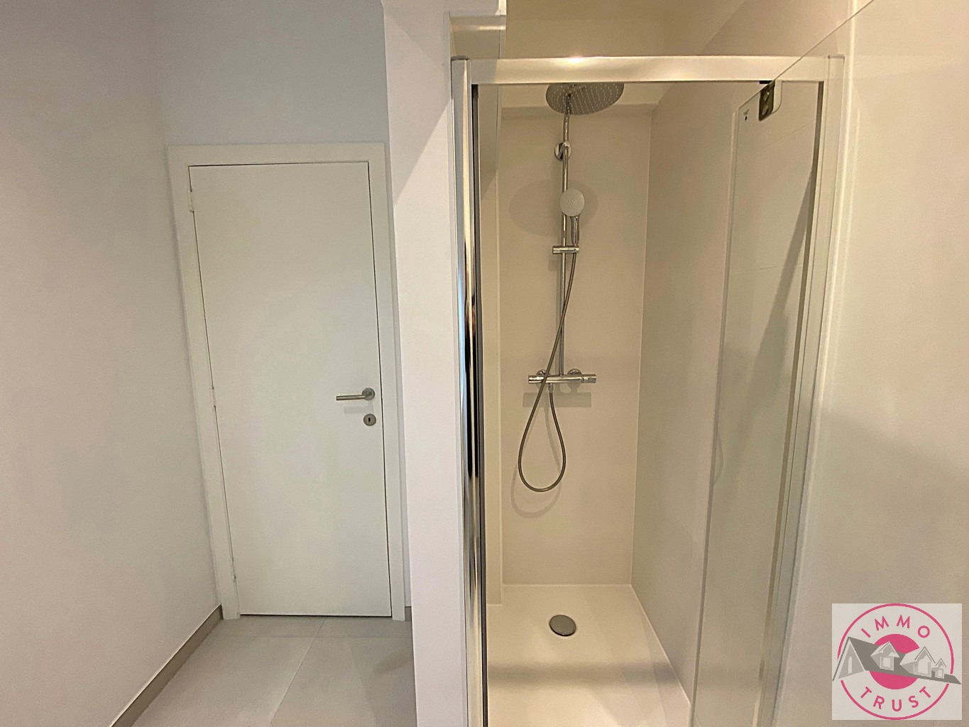 Composé d’un hall d’entrée, cuisine full équipée (four, taques, hotte, frigo/congélateur, lave-vaisselle) avec terrasse de ±20m², séjour de ±25m², chambre de ±17m², chambre de ±10m², 2 toilettes séparées, salle de douche, buanderie avec toutes les connections pour une machine à laver et à sécher, cave individuelle. Local vélo et poussettes dédié au rez-de-chaussée. Local poubelles au -1.