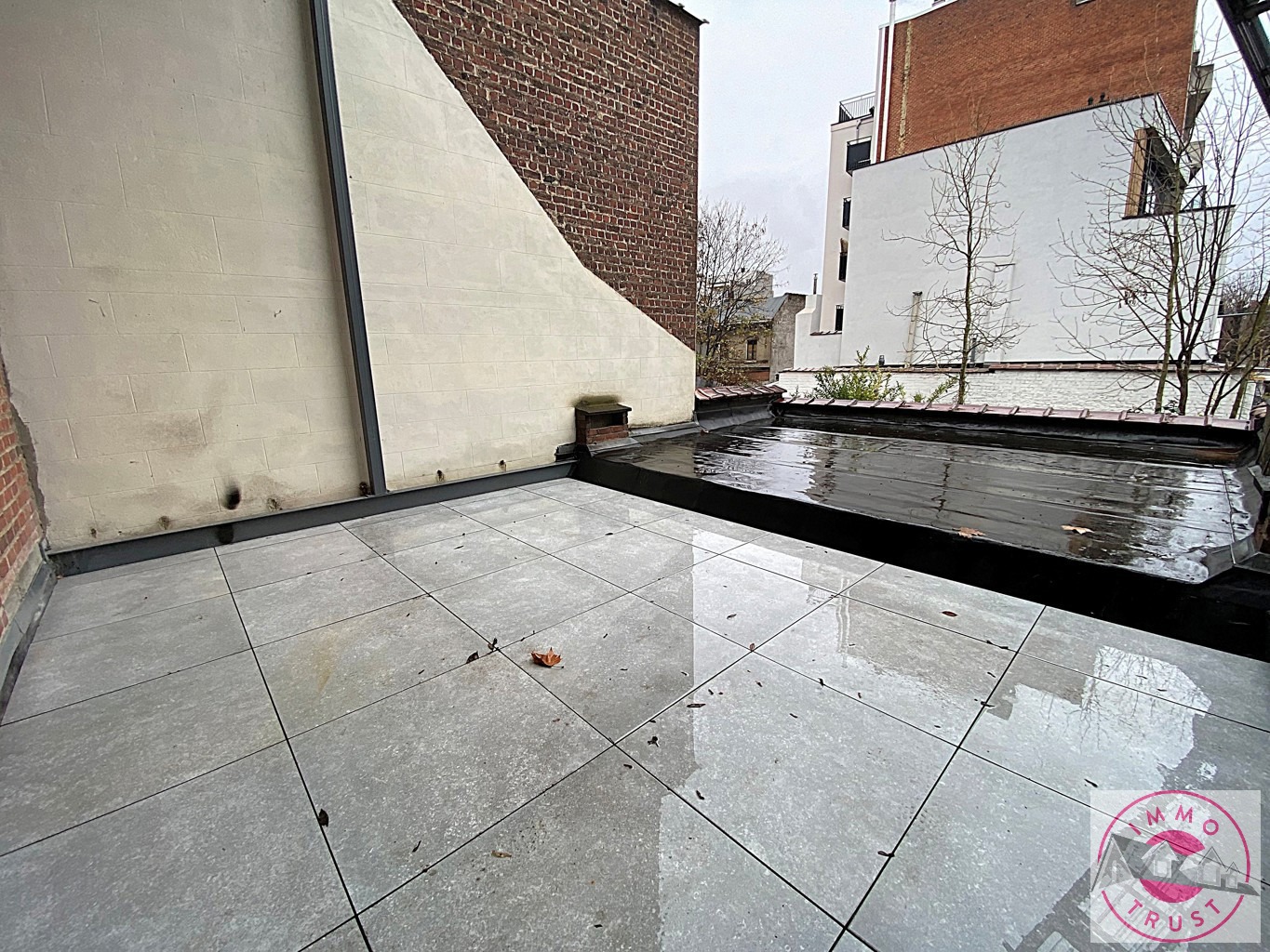 Splendide duplex 2 chambres entièrement remis à neuf de ±100m² habitables (et terrasse de ±20m²) dans un batiment de 2 duplex avec commerce au rez-de-chaussée, sur la place Vanderkindere, à deux pas du quartier Churchill/avenue Molière, proche du bois de la Cambre, avec accès immédiat aux transports.